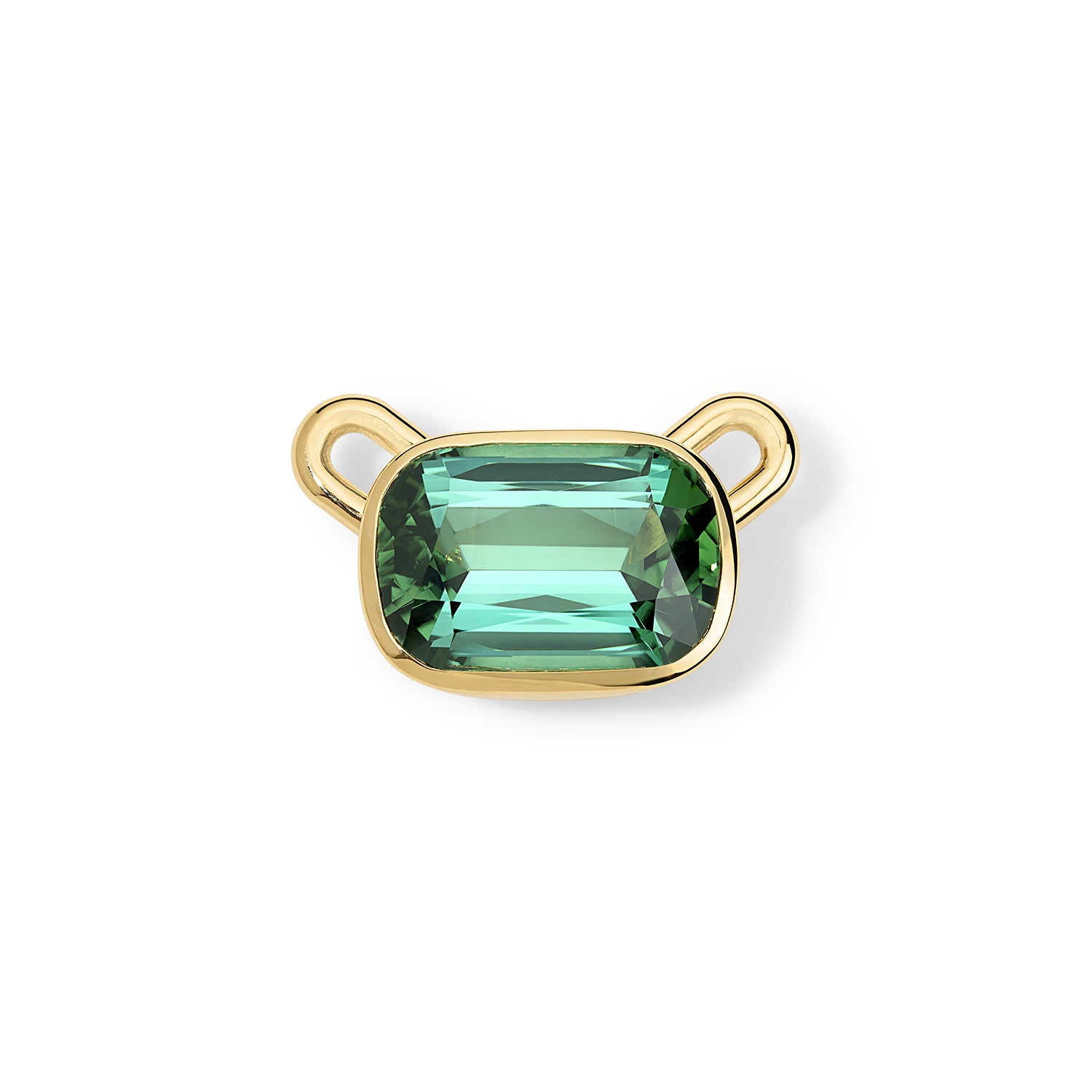 The Atha Center Piece captivates through a 25.83-carat blue-green tourmaline—its saturated depth held within a sculptural 18k yellow gold bezel. The cushion cut reveals shifting tones of teal and verdant blue, lending a luminous calm grounded by the clean, substantial lines that define the Atha silhouette.