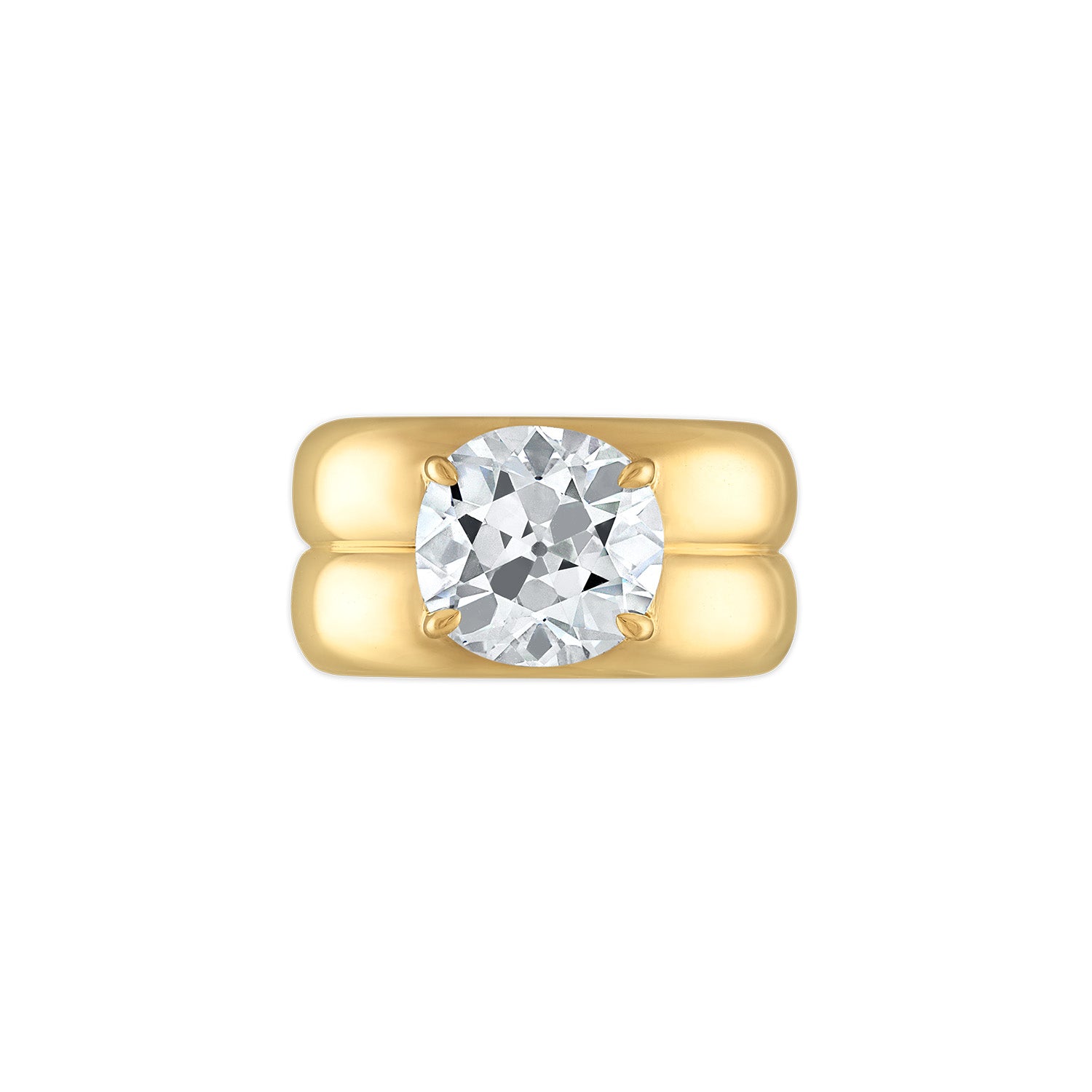 A timeless heirloom with presence. The Anna Ring pairs a 4.33-carat Old European-cut diamond with a sculptural, weighty 18-karat yellow gold double band—its proportions refined to highlight the antique character and open, glowing facets of the center stone. Bold yet classic, this one-of-a-kind piece speaks to the enduring beauty of historical cuts reimagined in a modern silhouette.