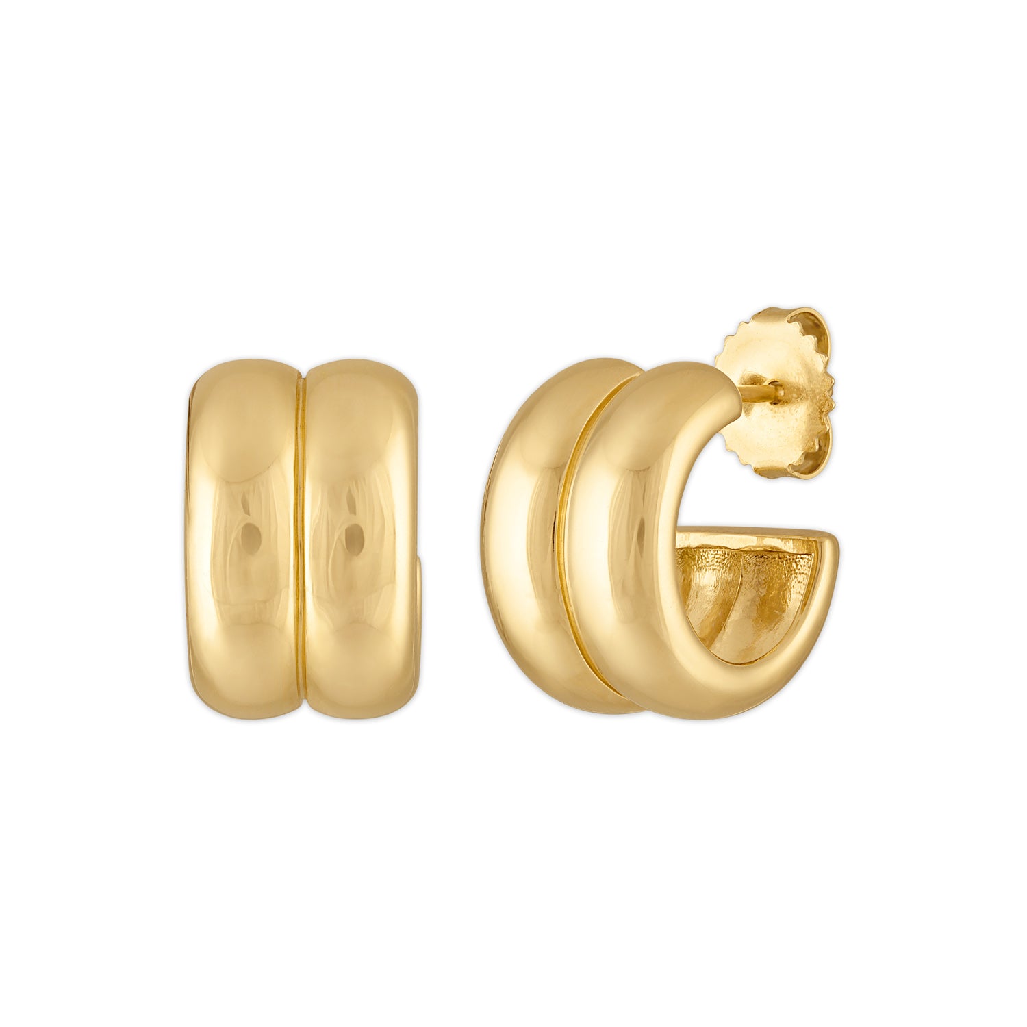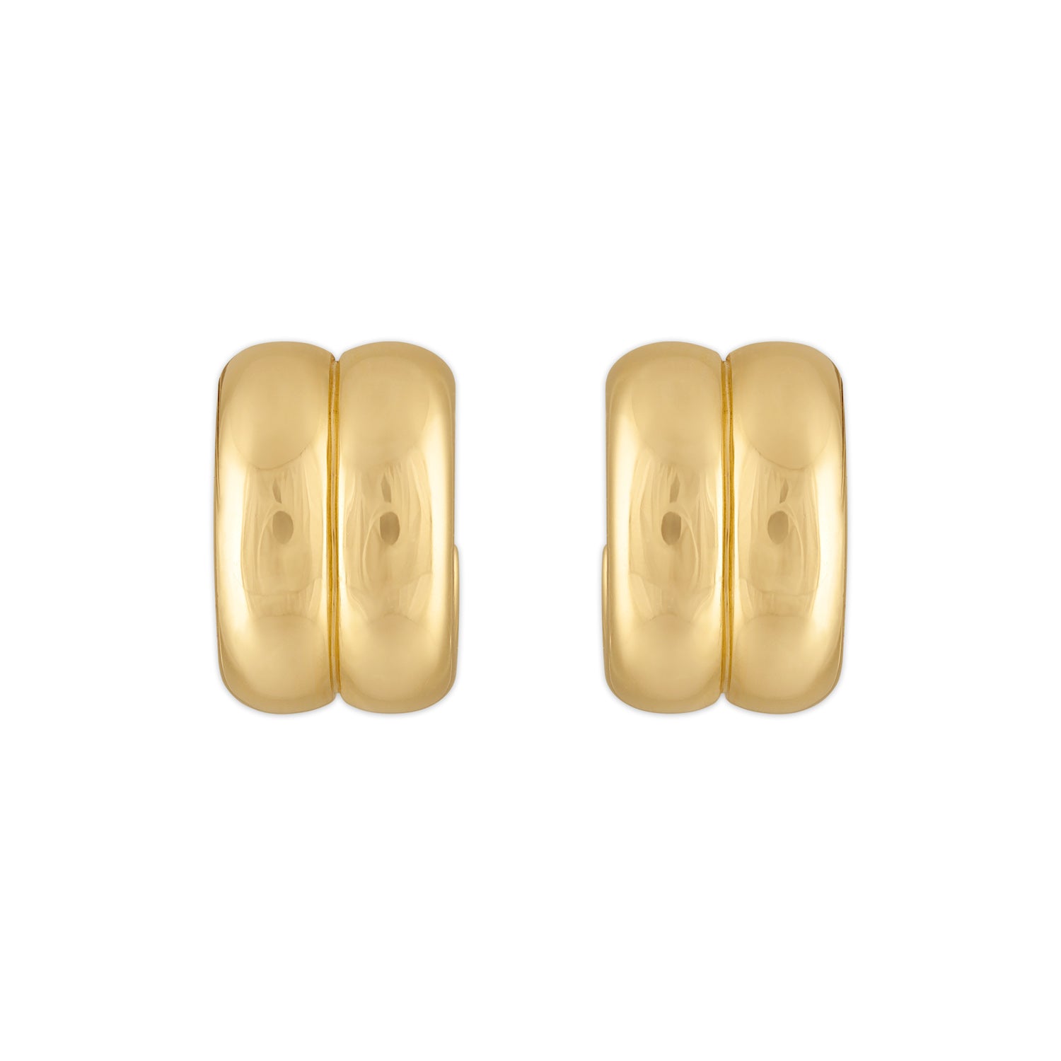 Cast in solid 18-karat yellow gold, their weight is deliberate—substantial but refined, with a clean silhouette that hugs close to the ear. Designed with permanence in mind, they offer quiet luxury for daily wear and future memory.