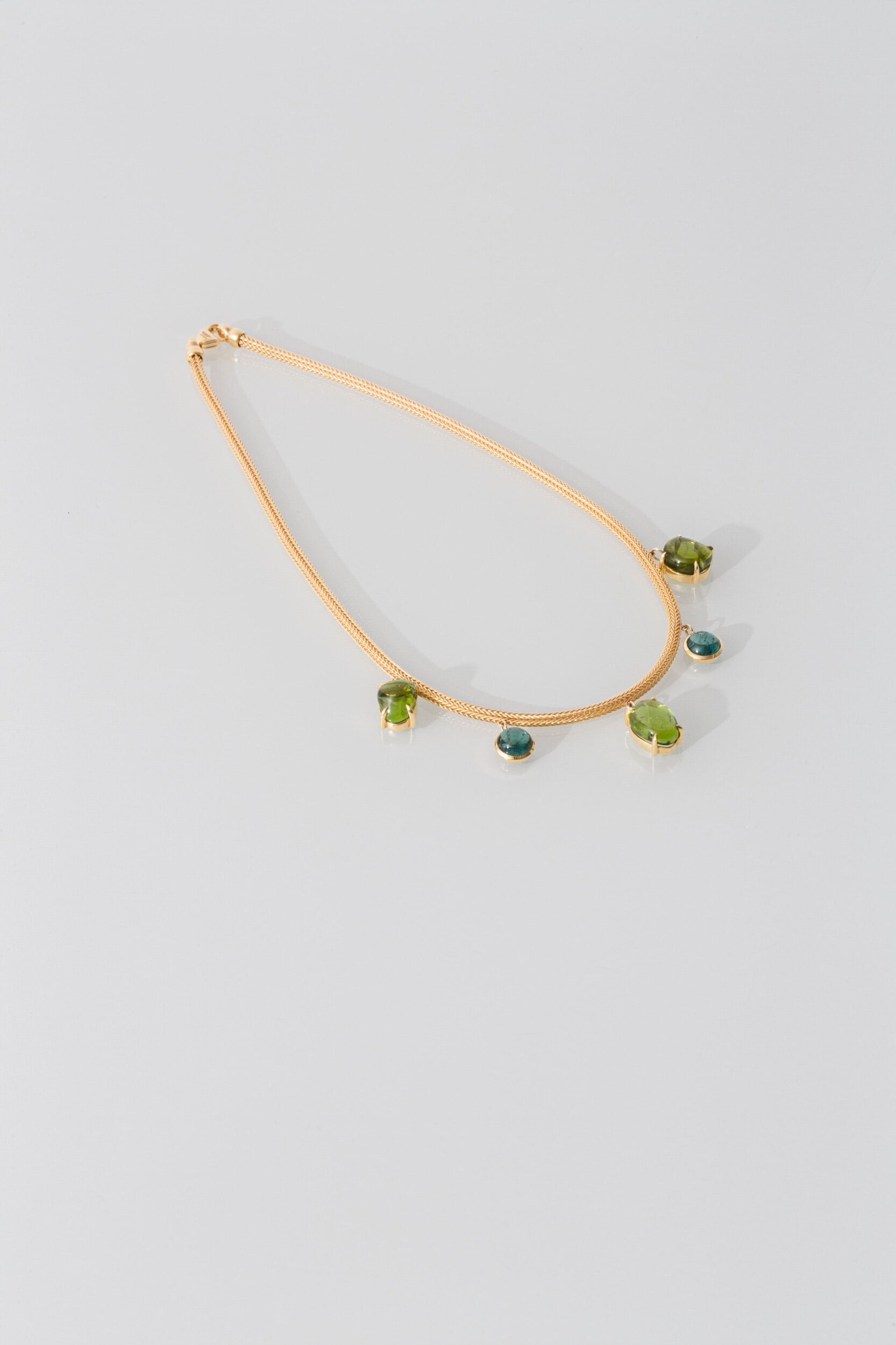 The gemstones are strung on our signature 3mm medium woven Leo chain—crafted in solid 18-karat yellow gold and tailored to a 16” length for an effortlessly elegant drape at the collarbone. Sculptural yet fluid, the chain adds weight and dimension without overwhelming, allowing the vibrant stones to lead.