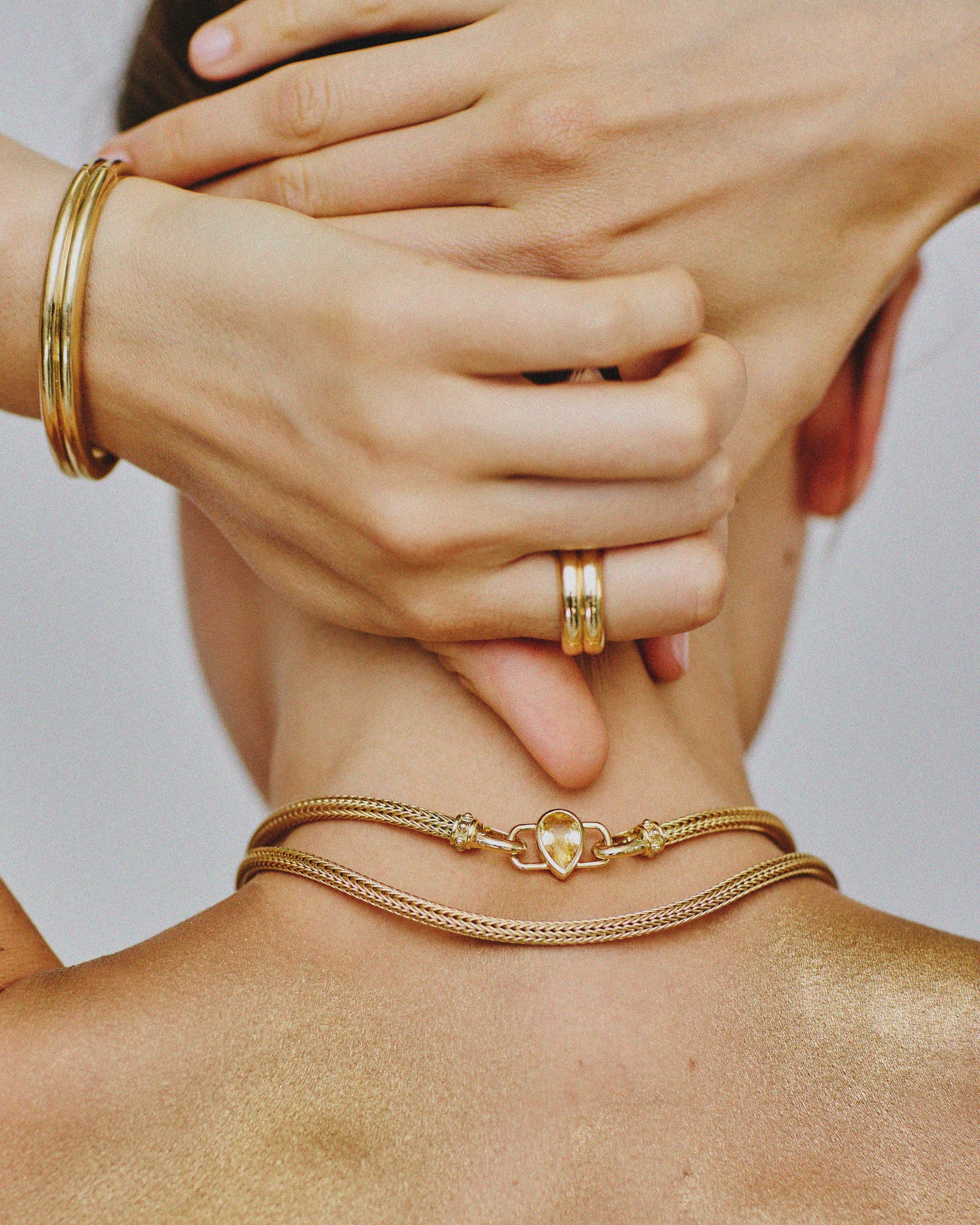 Handmade in New York City, each piece is cast in 18-karat gold and set with hand-selected gemstones (unless otherwise specified). Designed by Jade Ruzzo with an emphasis on sculptural lines, quiet strength, and heirloom quality.