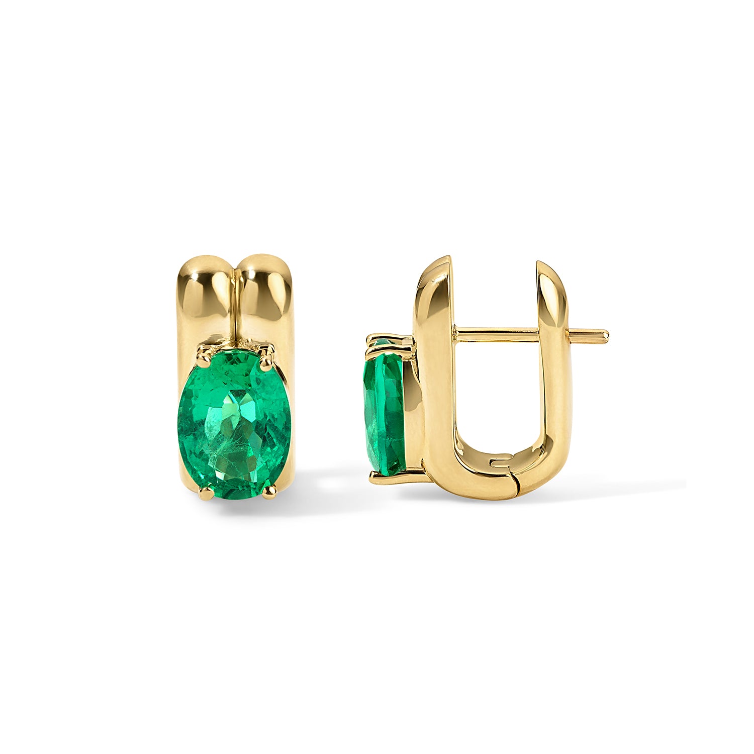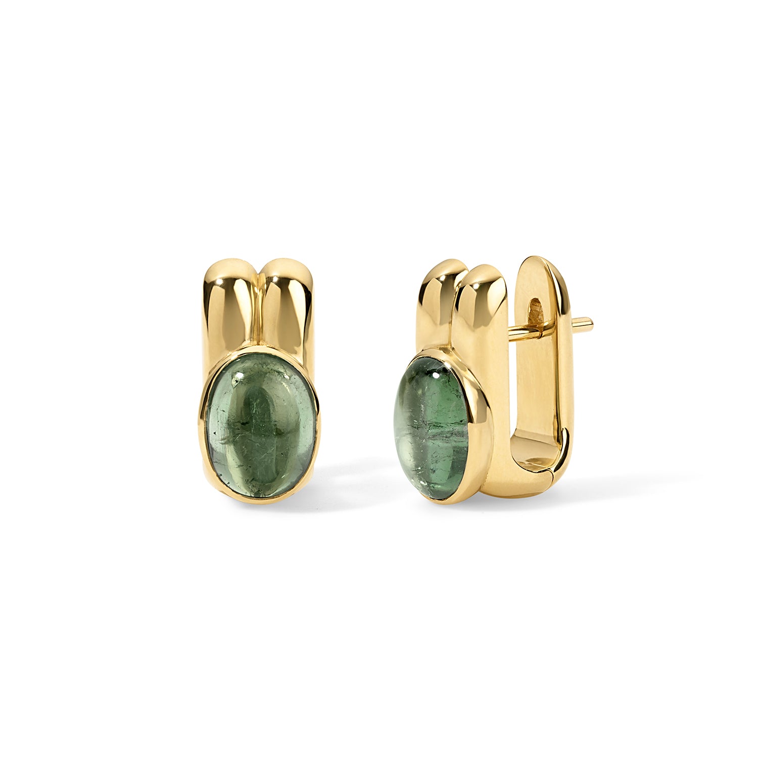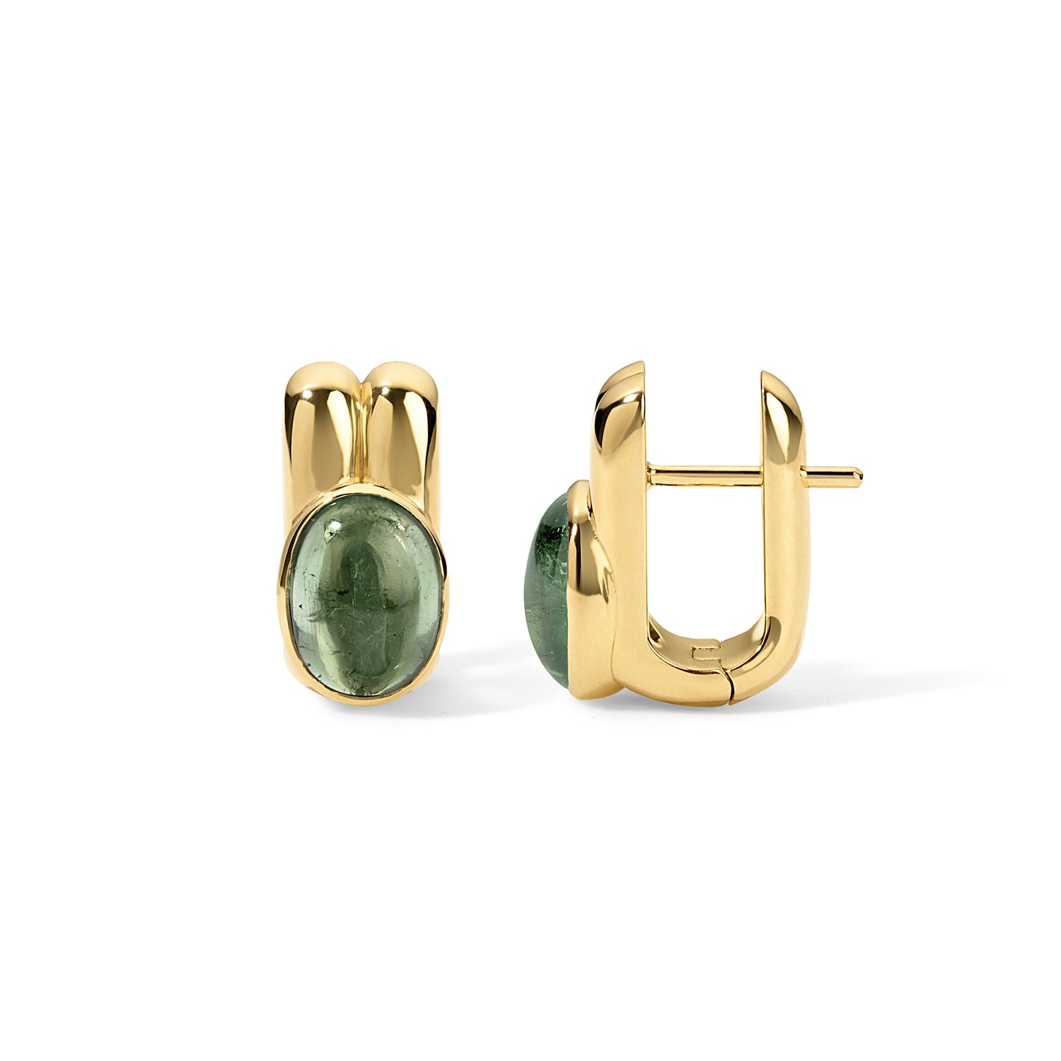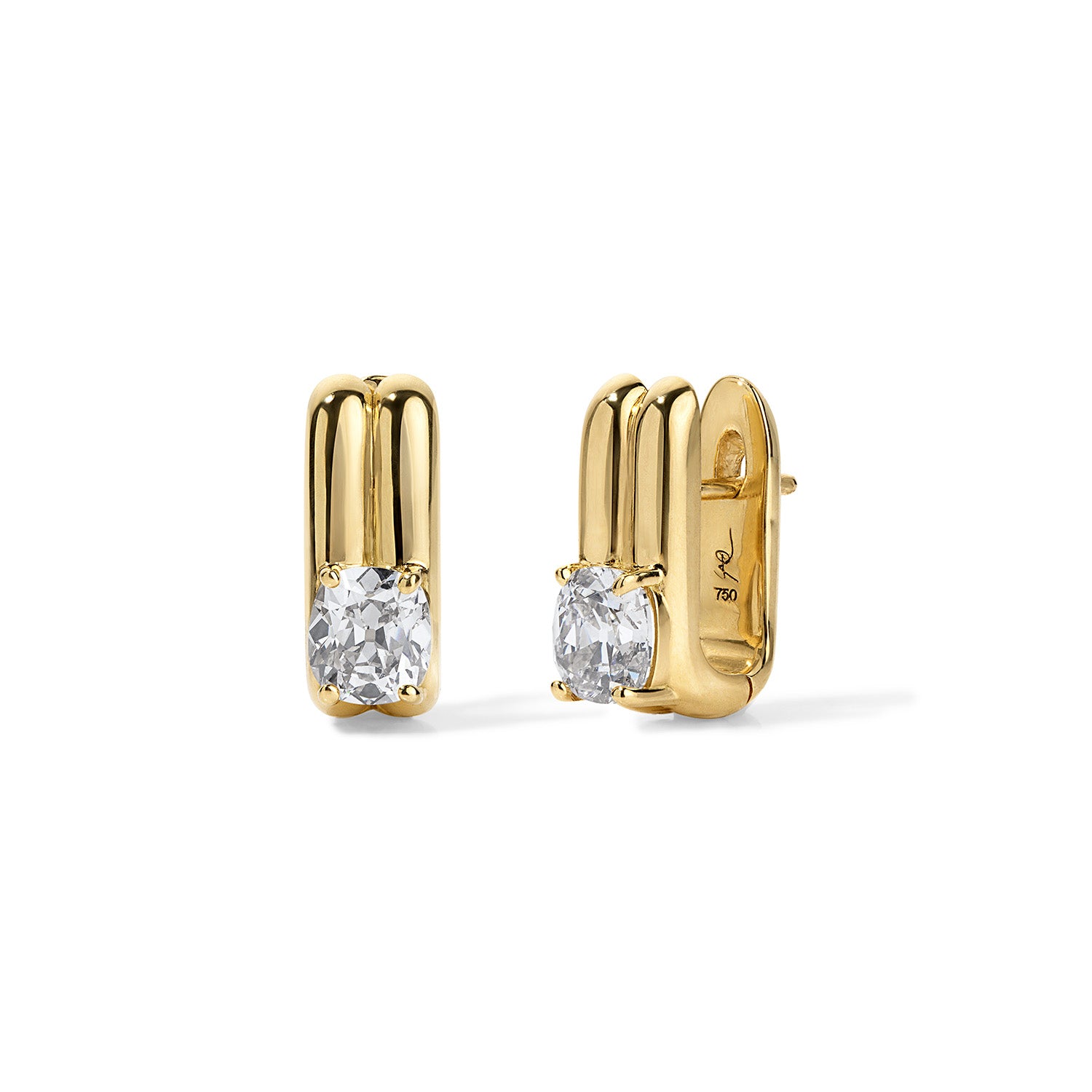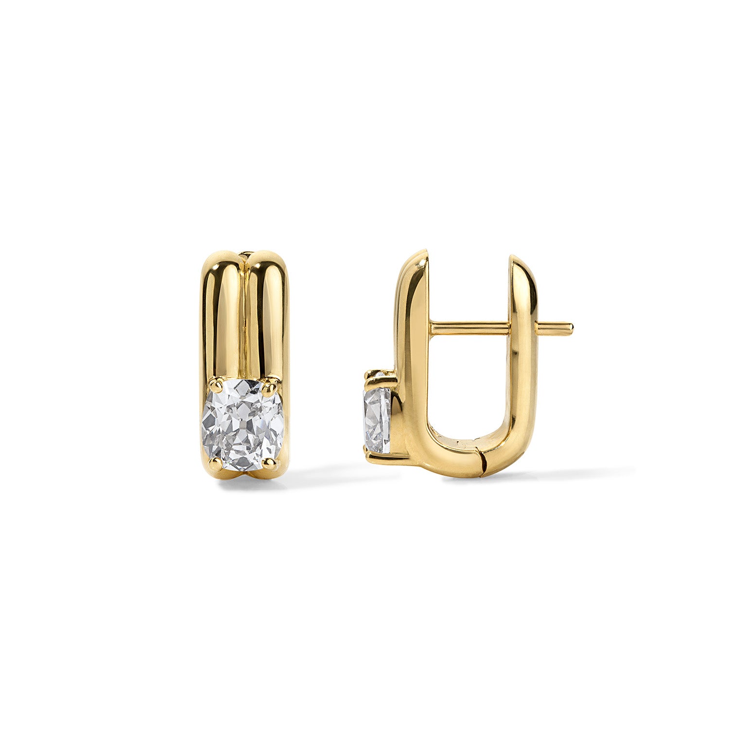 Each pair is cast in solid 18-karat yellow gold with a seamless hinge closure. Center-set with an 8x6mm oval gemstone or an antique old mine brilliant cut diamond, the design offers presence without excess. Customizable by stone, the pair becomes a subtle signature—tailored, timeless, and entirely one’s own.