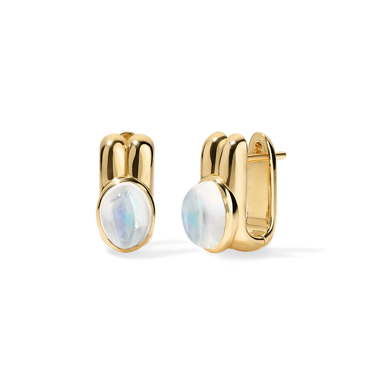 A quiet take on ornament. The Anna Huggies, set with a single oval gemstone or antique diamond, distill the sculptural weight of the Anna series into a compact, personal form.