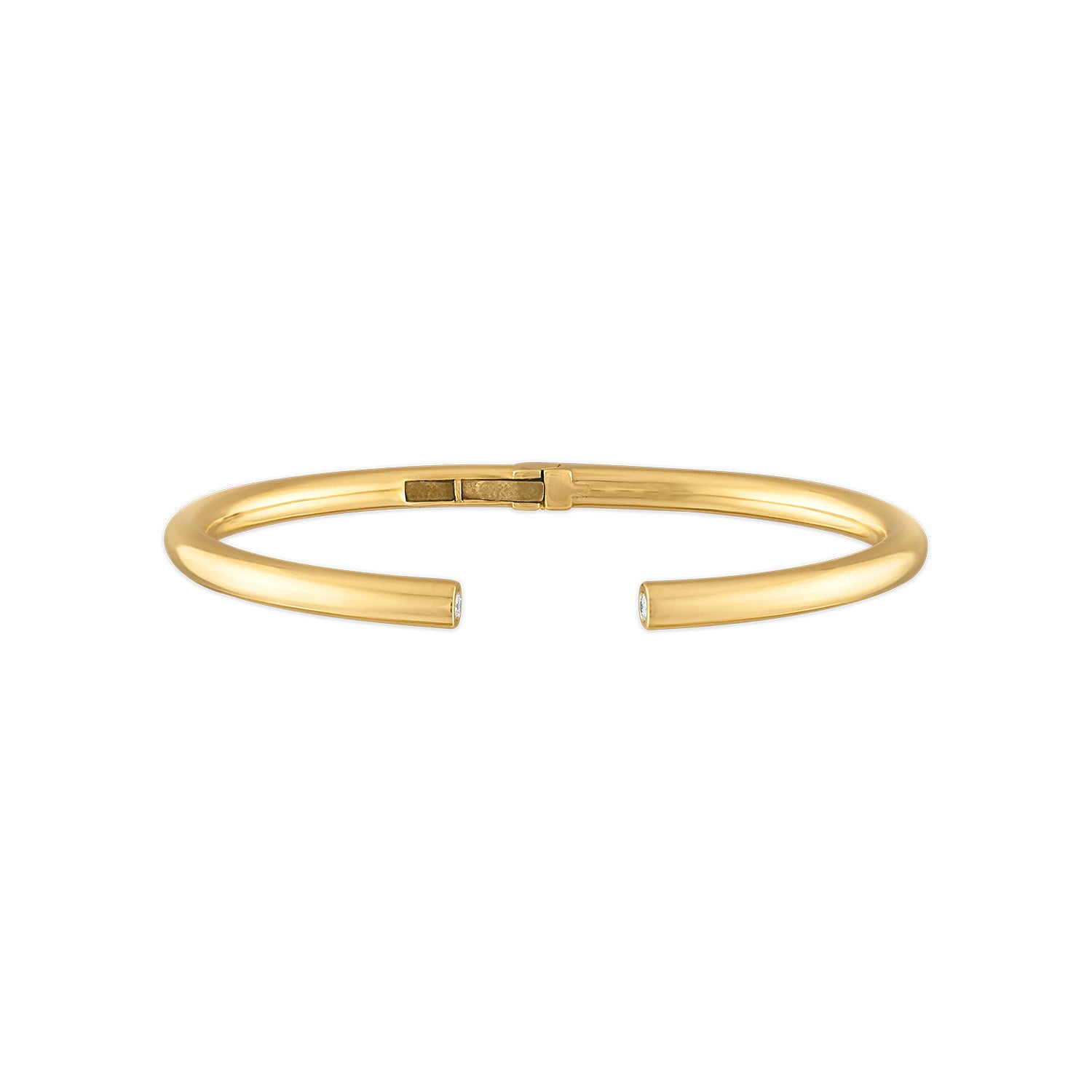 A hidden hinge closure keeps the line uninterrupted, while the smooth, high-polish surface gives it a timeless presence. Understated yet unmistakable, it’s the kind of piece that feels like it’s always belonged to you.