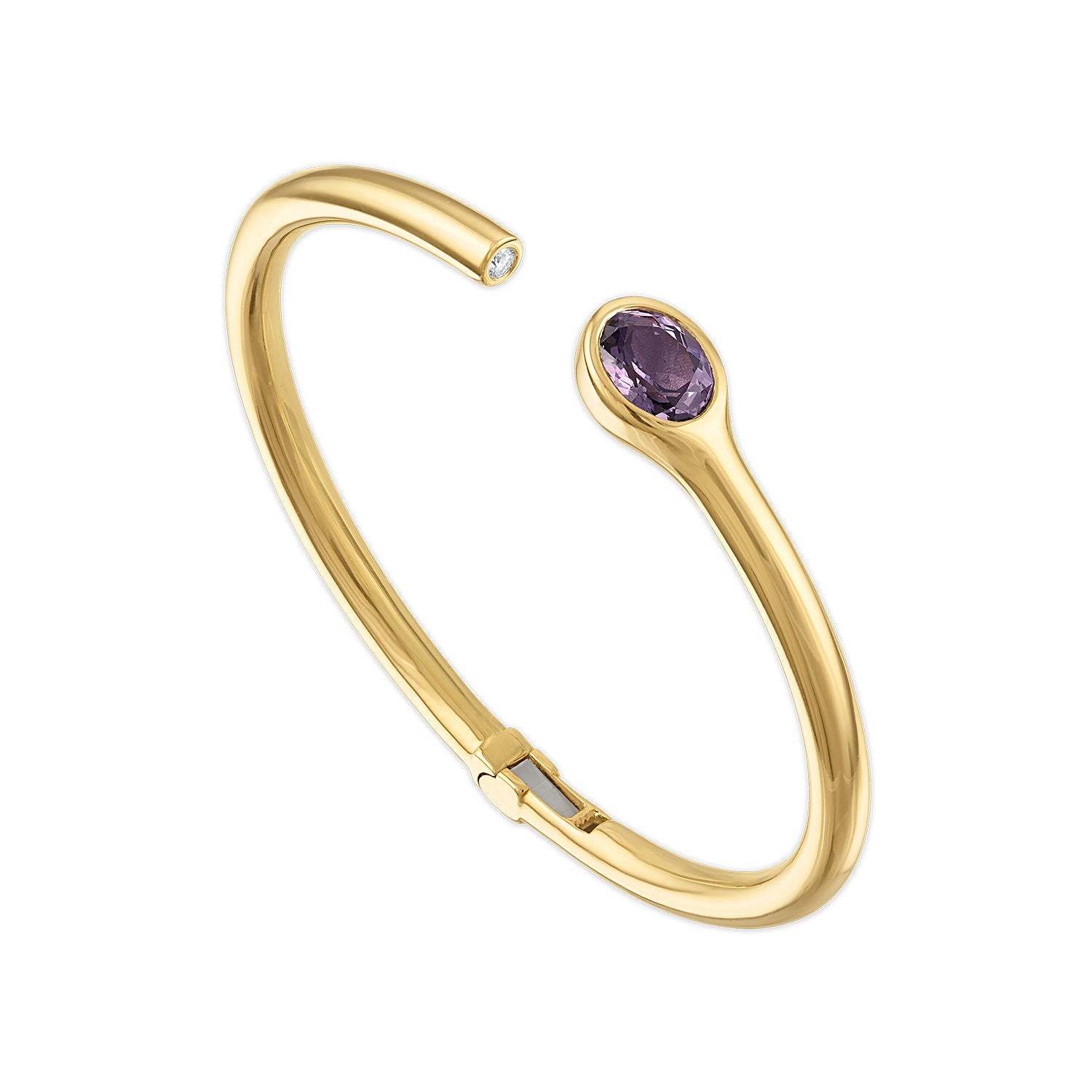 A sculptural cuff in solid 18k yellow gold, anchored by a hand-selected gemstone. The Stoned Atha Cuff is weighty yet refined, with clean, curved lines that hug the wrist and a discreet hinge for ease of wear. A signature sneaky diamond at the cuff’s end adds a subtle flash of light — an intentional detail designed to surprise from every angle.