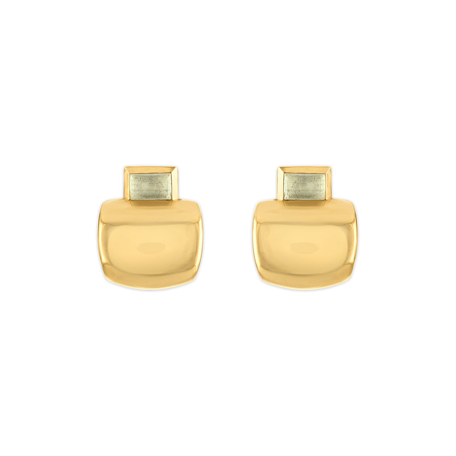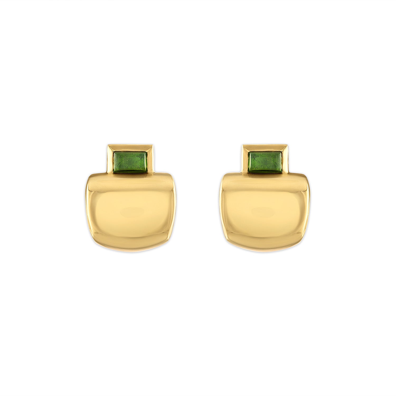 A refined riff on the original. The Small Cowbell Earrings reimagine the bold lines of the larger silhouette in a more compact, sculptural form—featuring luminous cushion-cut cabochons set atop a high-polish 18-karat gold drop. Elegant and versatile, they add a considered flash to your everyday rotation.