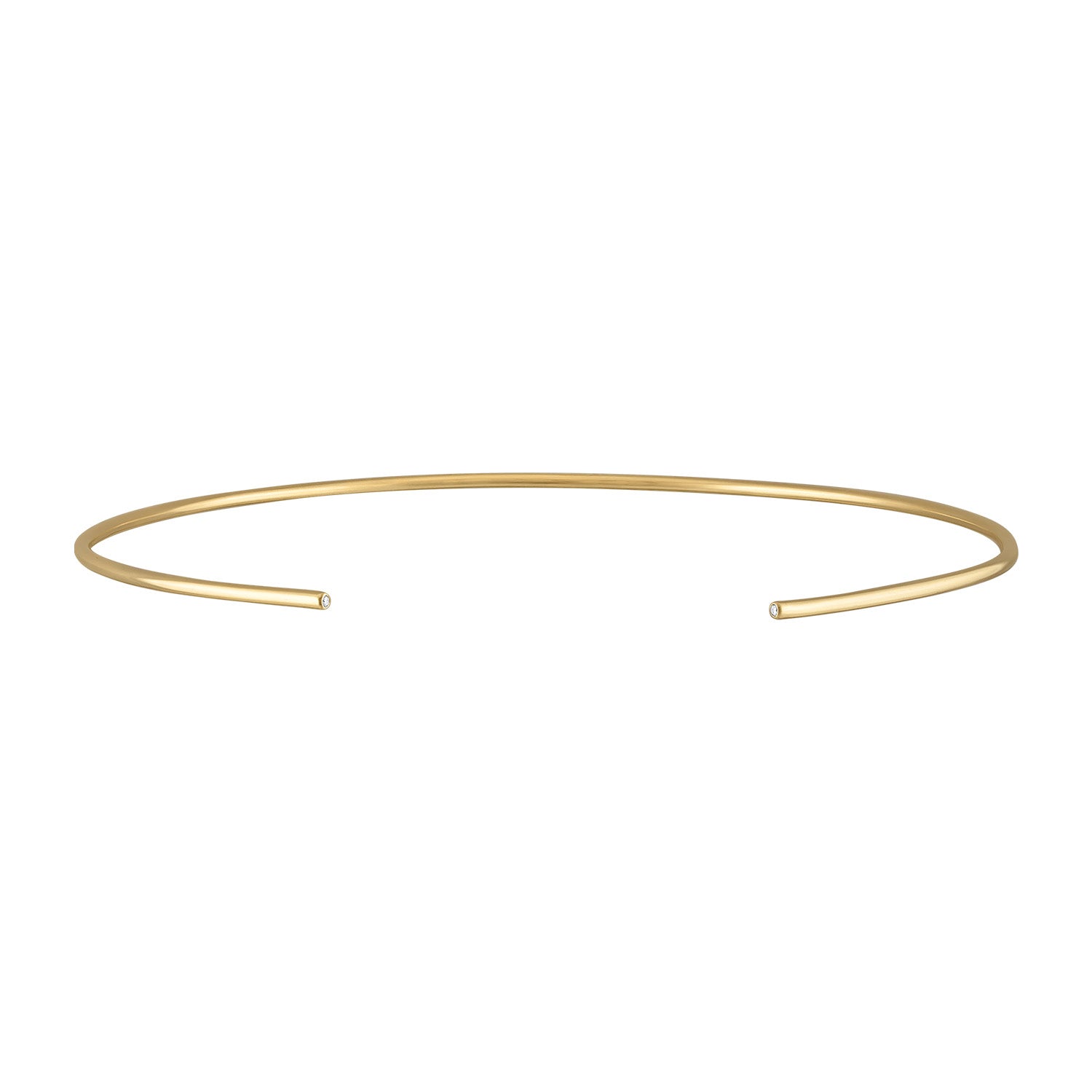 Available in two widths—2.5mm and 3.0mm—each version is crafted from solid 18-karat yellow gold and subtly contoured to rest gently along the collarbone. When worn open in front, the diamonds catch the light like a wink; worn traditionally, they’re your secret to keep.