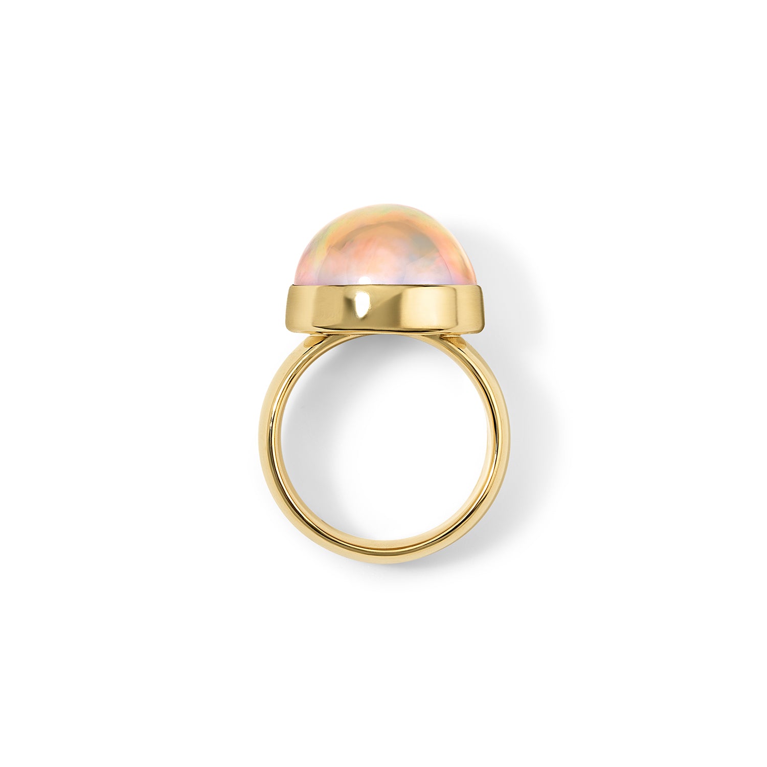 Named for Jade’s father, the Vic Ring balances strength and softness in equal measure. This iteration of the Single Vic features one generous cabochon gemstone set into a wide, pillowy band of solid 18-karat yellow gold. Sculptural and grounded, the proportions highlight the stone’s natural beauty while giving the piece a quiet boldness that holds its own.
