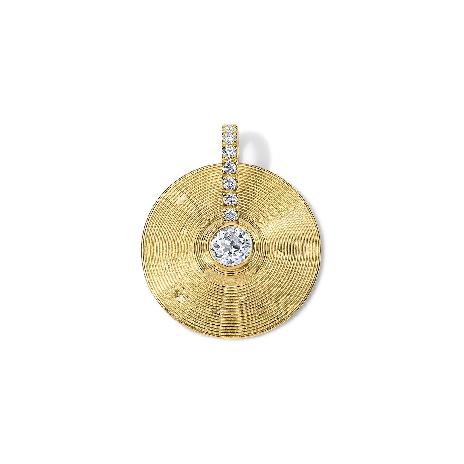 Part of the Percussion Collection, the Cymbal Pendant is a tribute to Jade’s late father, Vic—a professional drummer. A light hand-hammered finish gives each pendant the appearance of having been played, ensuring no two are exactly alike. Engraved with the words “keeping the beat” on the back, it’s a modern heirloom designed to sit close to the heart.