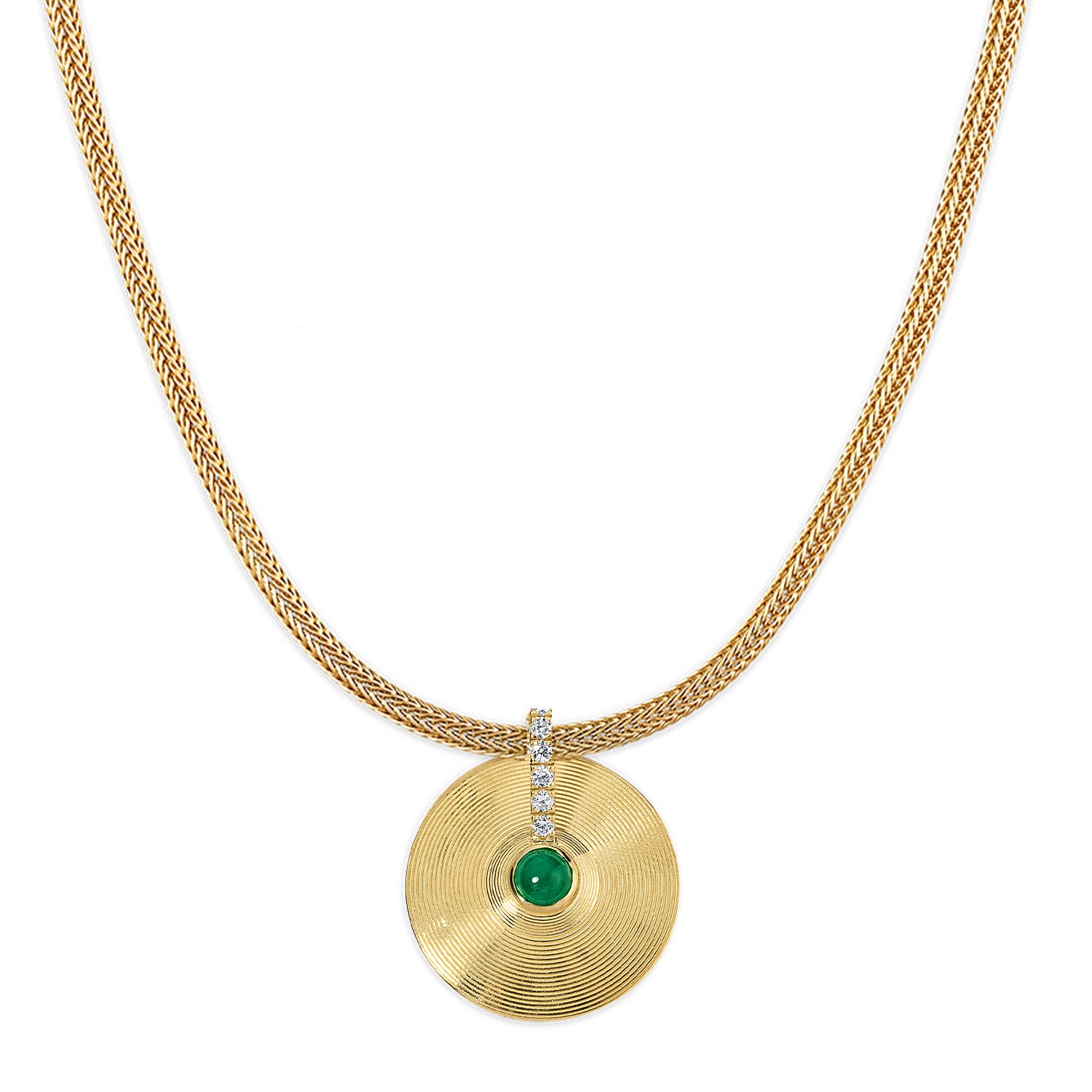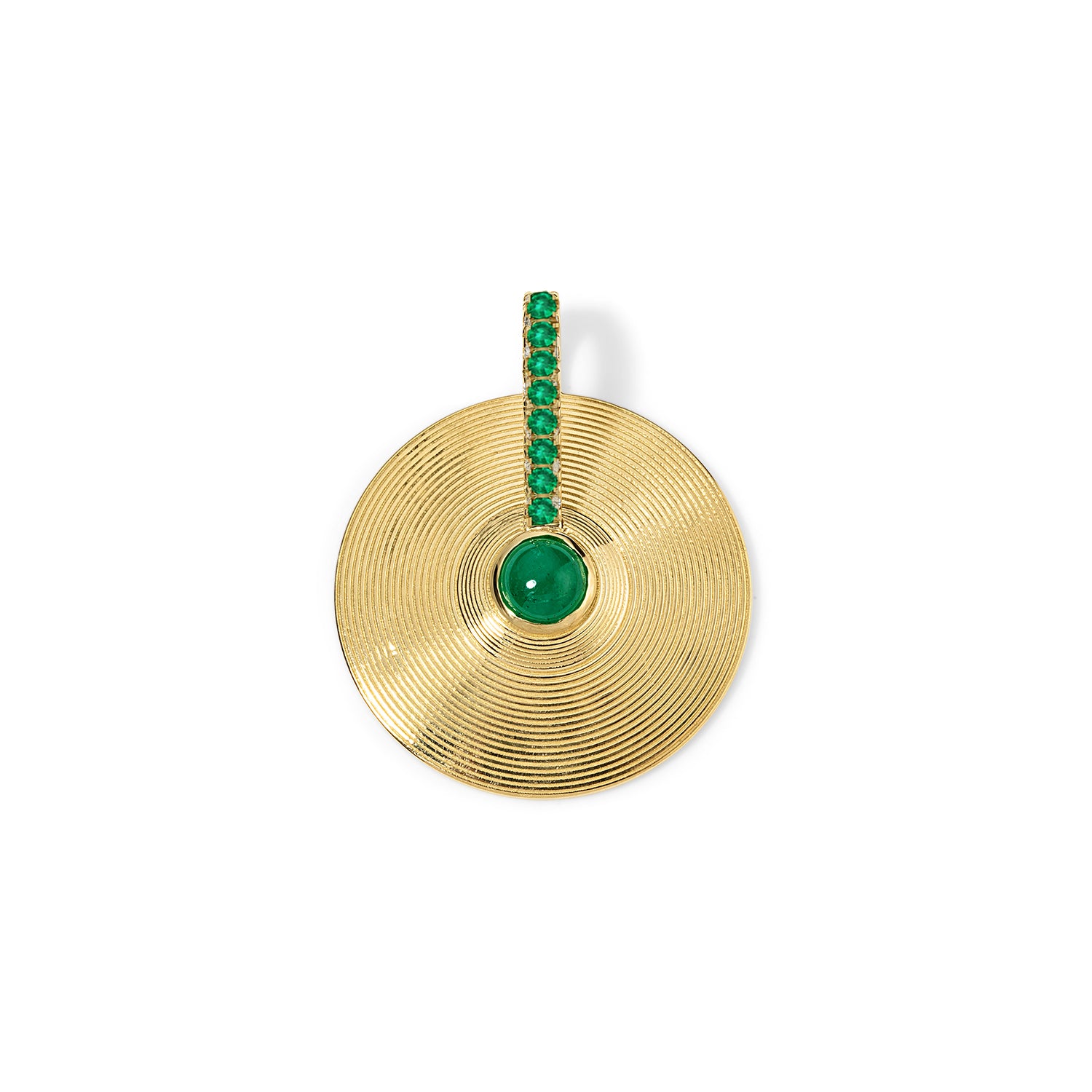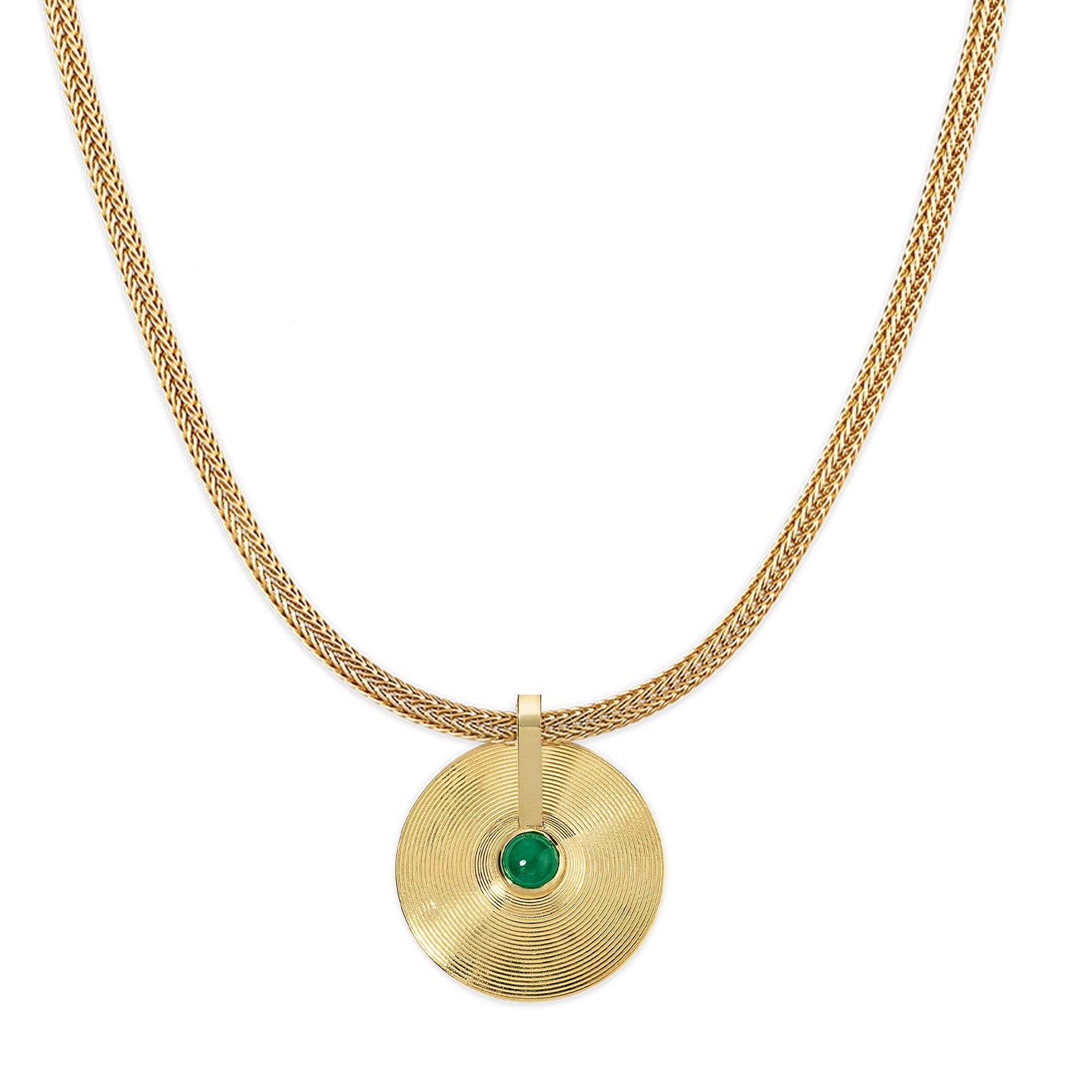 Part of the Percussion Collection, the Cymbal Pendant is a tribute to Jade’s late father, Vic—a professional drummer. A light hand-hammered finish gives each pendant the appearance of having been played, ensuring no two are exactly alike. Engraved with the words “keeping the beat” on the back, it’s a modern heirloom designed to sit close to the heart.