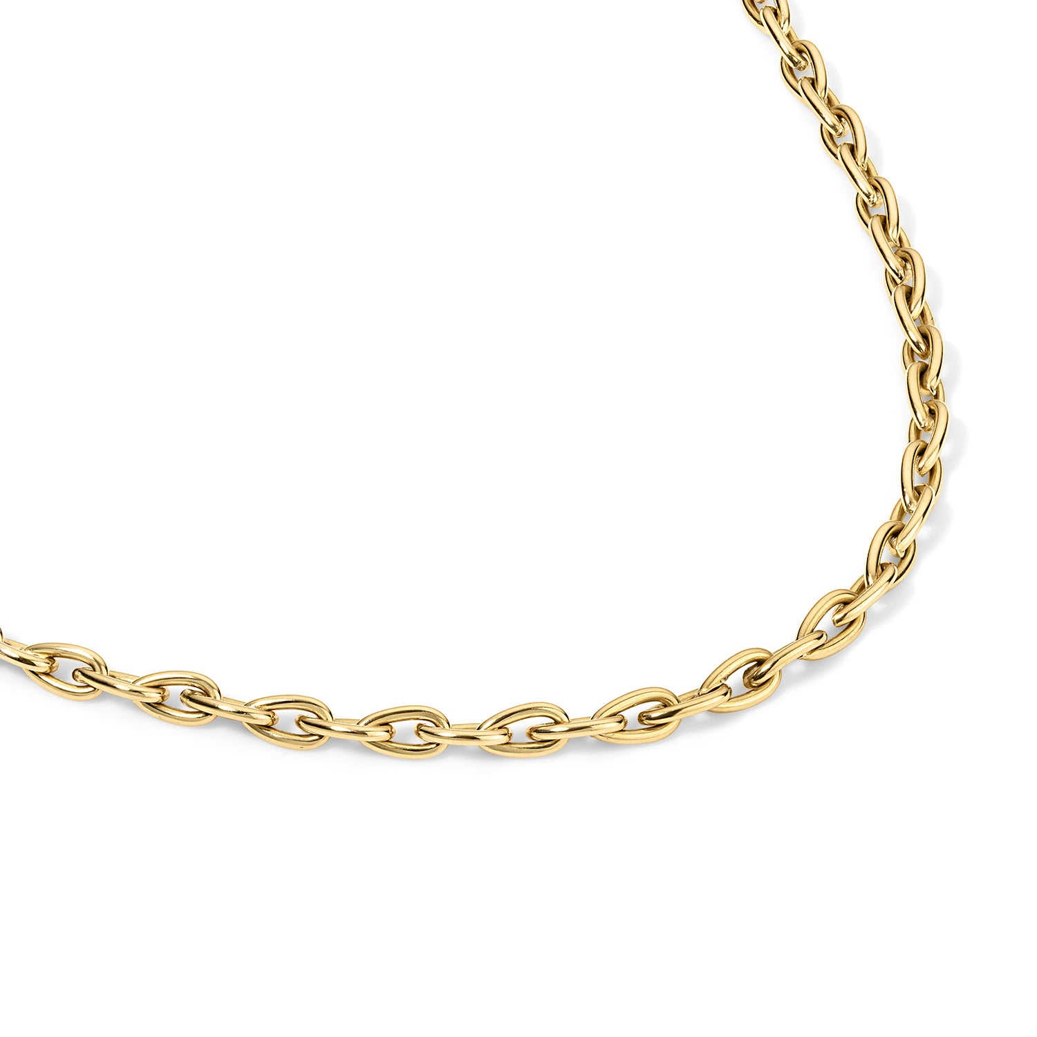 Playful in form, grounded in gold. The Small Freddy Chain is composed of pear-shaped links in solid 18k yellow gold, creating a rhythmic silhouette that feels both sculptural and fluid. At 3.4mm wide, it offers just the right amount of presence — easy to wear solo or layered into a bolder composition.