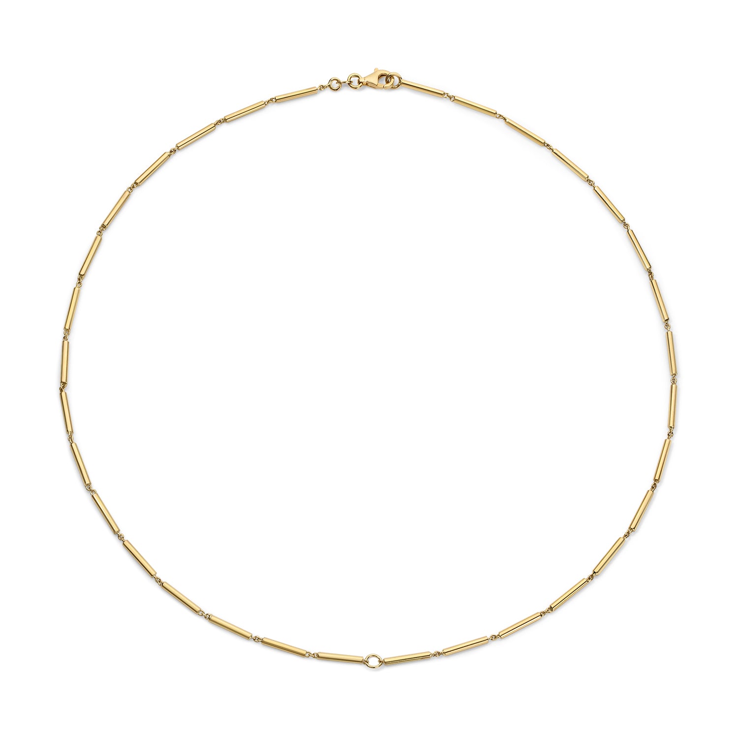 Refined and versatile, the Stick Chain is crafted in solid 18k yellow gold with elongated, linear links for a clean, modern profile. Measuring 1.6mm wide, it’s light yet substantial enough for everyday wear. A discreet jump ring at the center makes it the perfect foundation for the XS Cymbal or any favorite pendant.