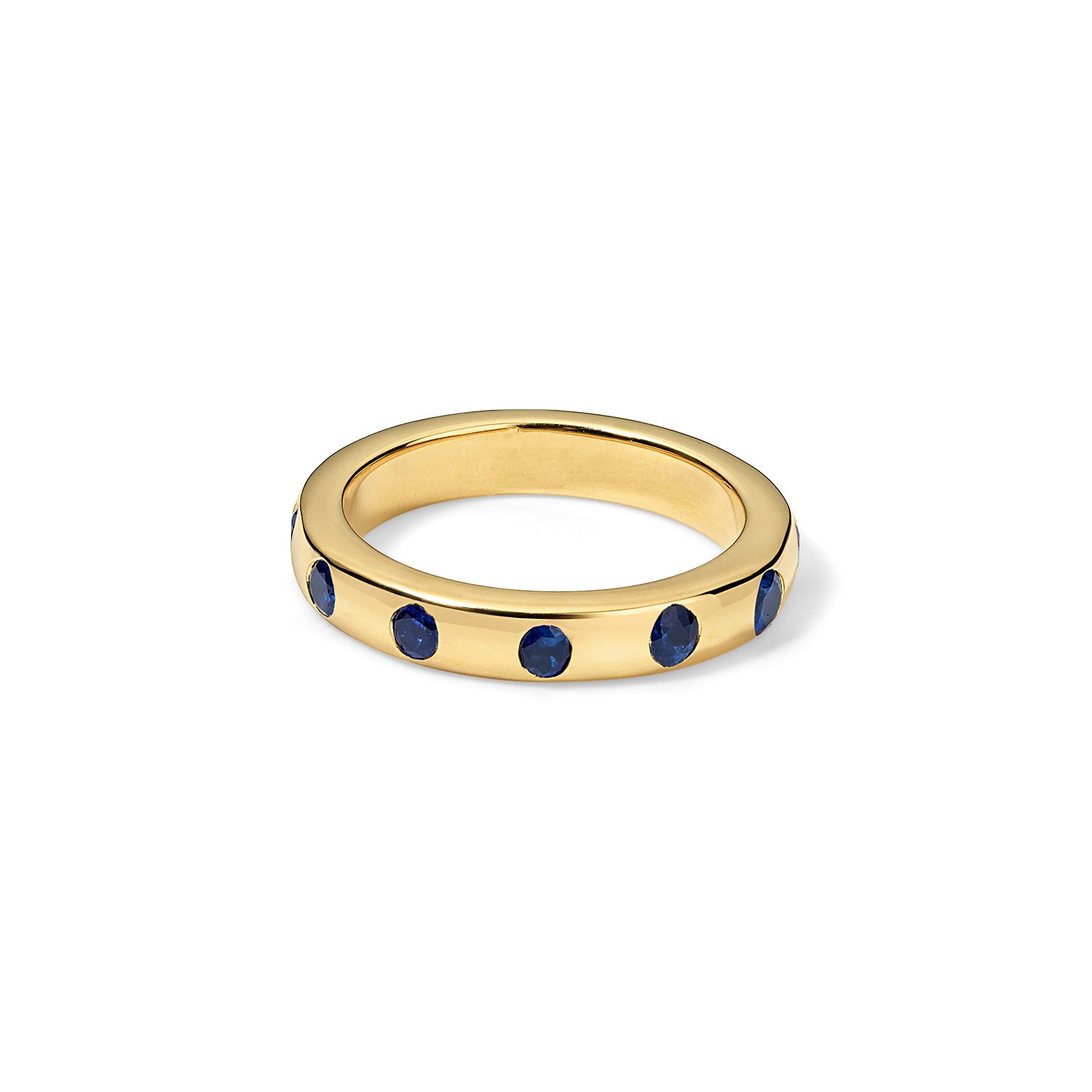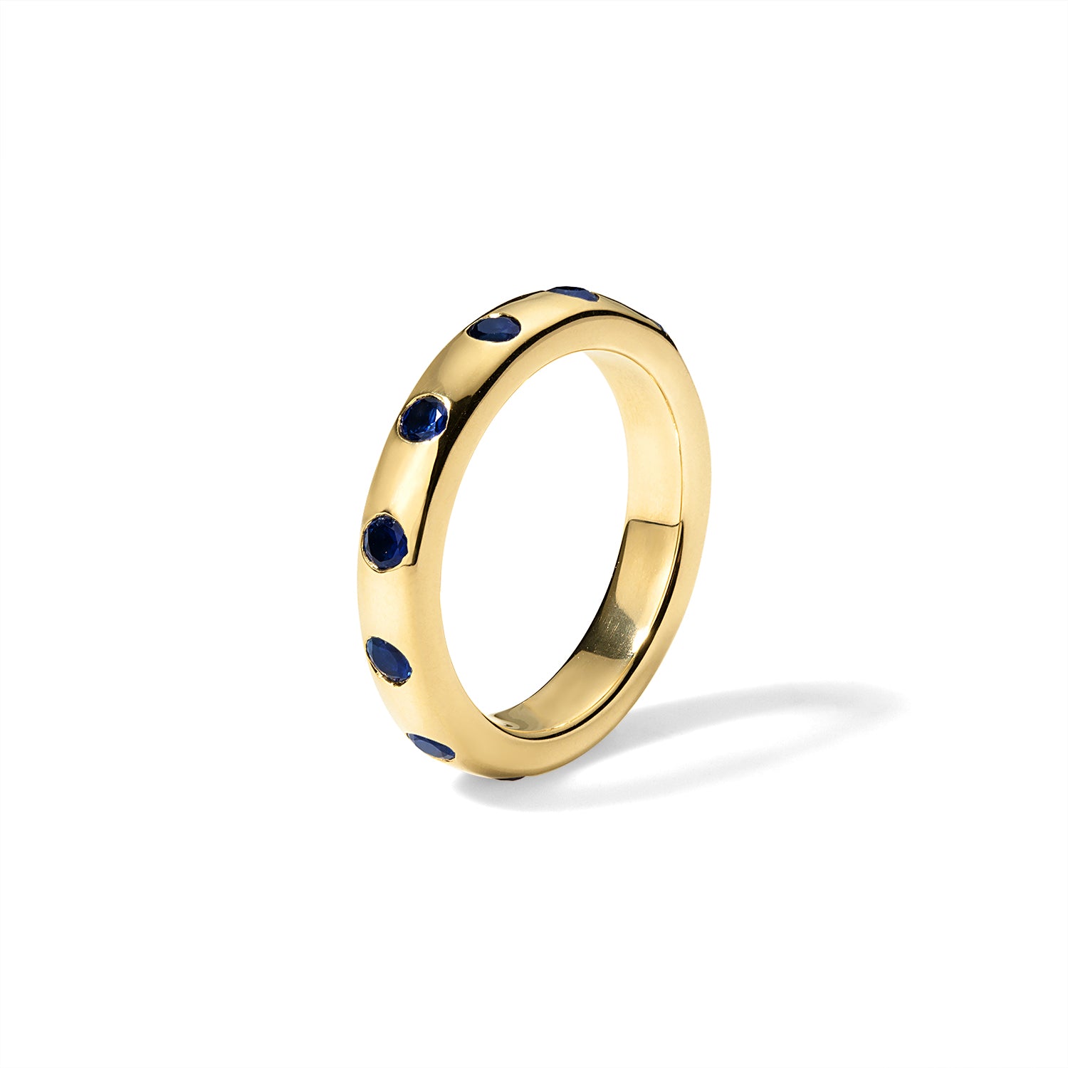 A sculptural classic, inlaid with quiet depth. The Pitch Band is reimagined with smooth gemstones—each one hand-set into the 4mm silhouette in a rhythm of color and texture.