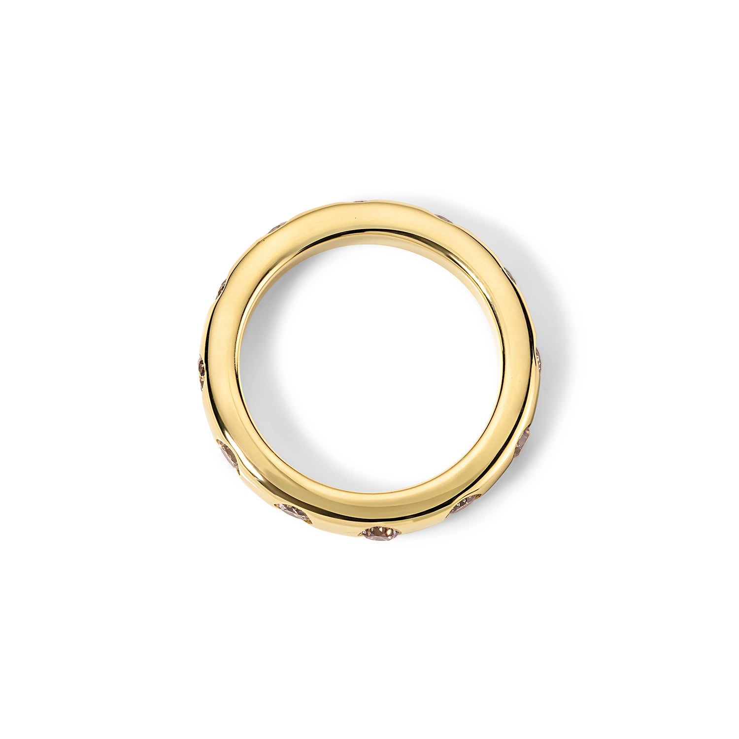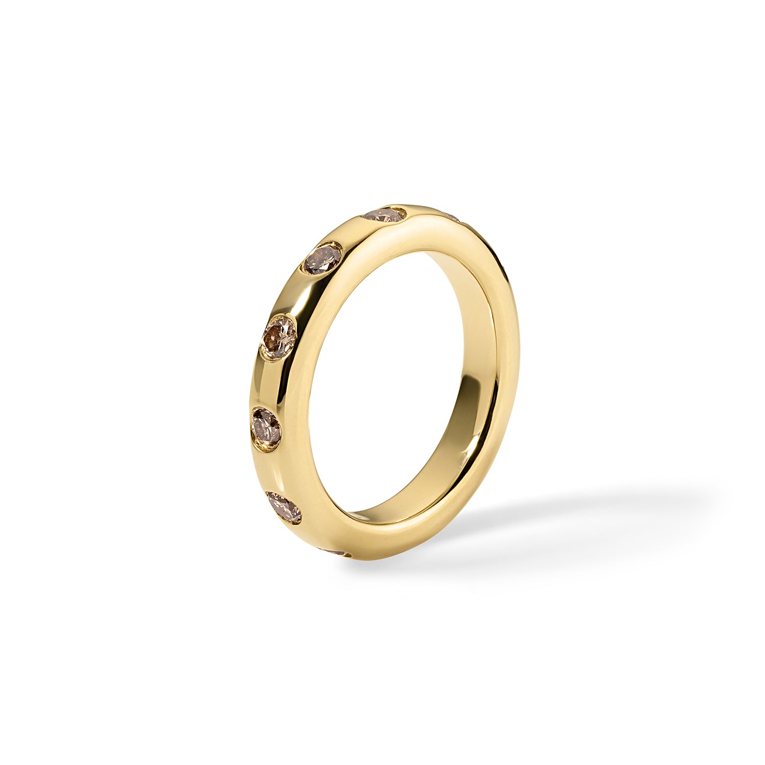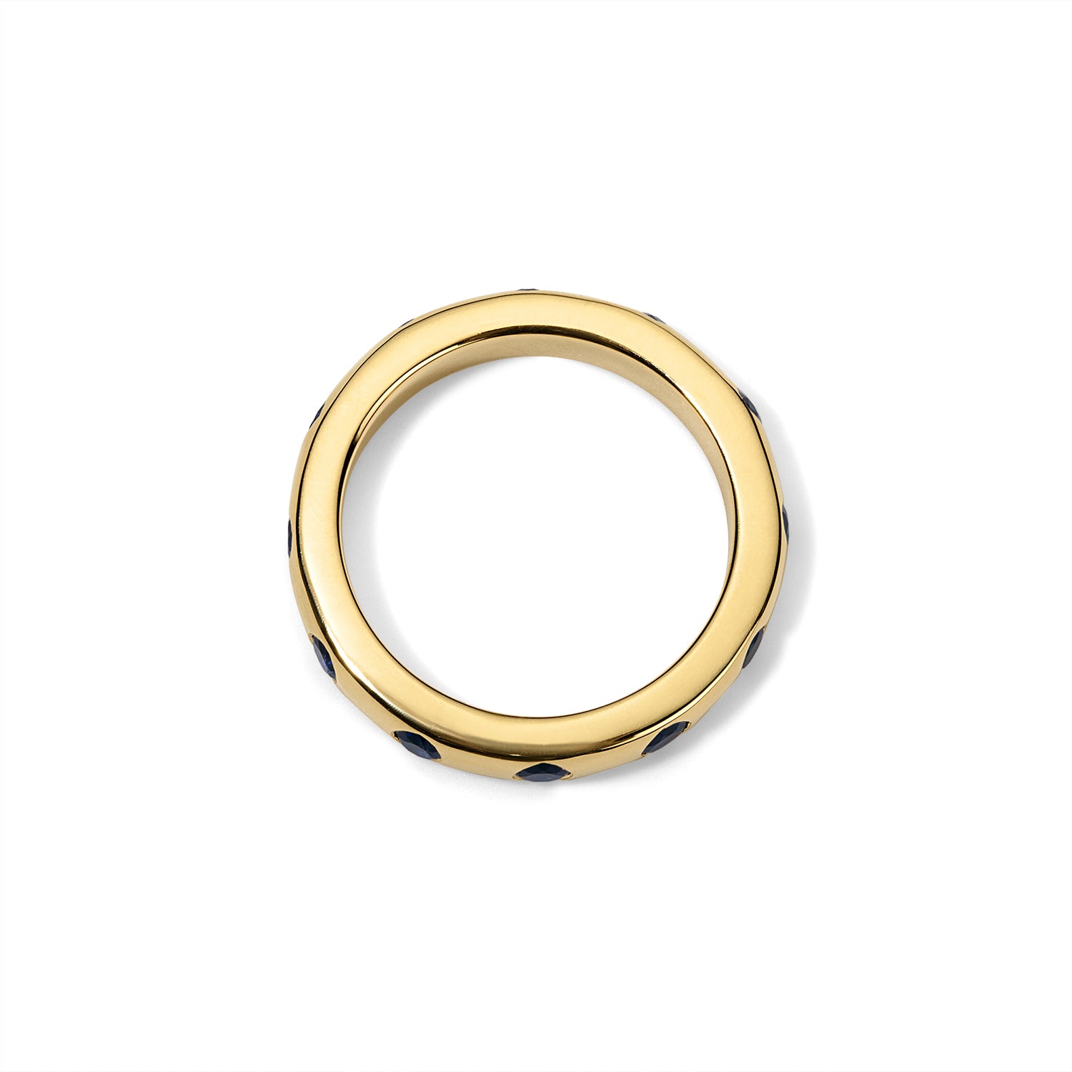 Offered in your choice of stone the inlay brings a subtle visual beat to the band’s clean form. Crafted in solid 18-karat yellow gold, it’s designed to anchor a stack or stand alone with quiet confidence.