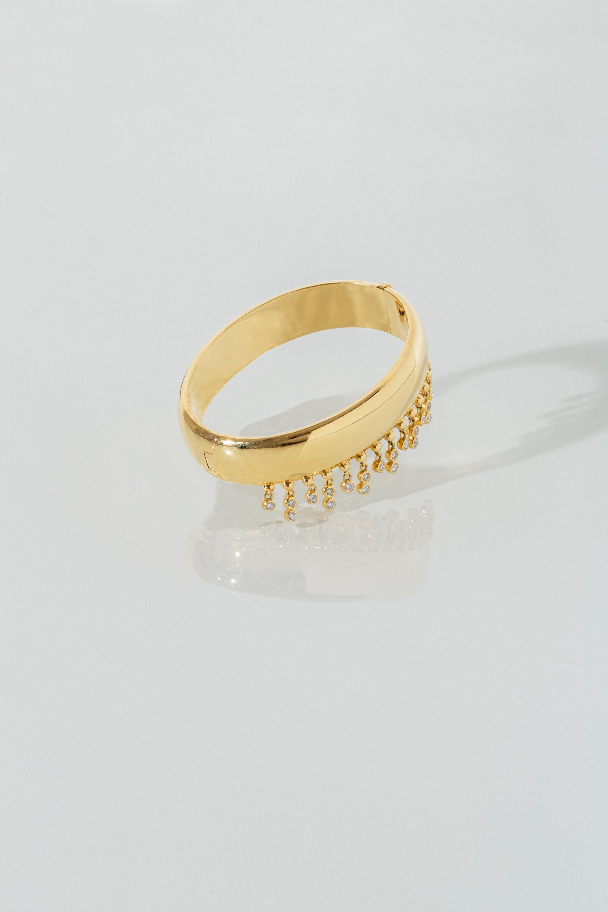 A pulse you can wear. The Tennessee Drip Bangle reimagines the signature fringe of the original Tennessee design—this time with an exaggerated sense of movement. A line of G VS diamonds drips from a solid 18-karat gold bangle, each one intentionally spaced to create rhythm and lightplay across the wrist.