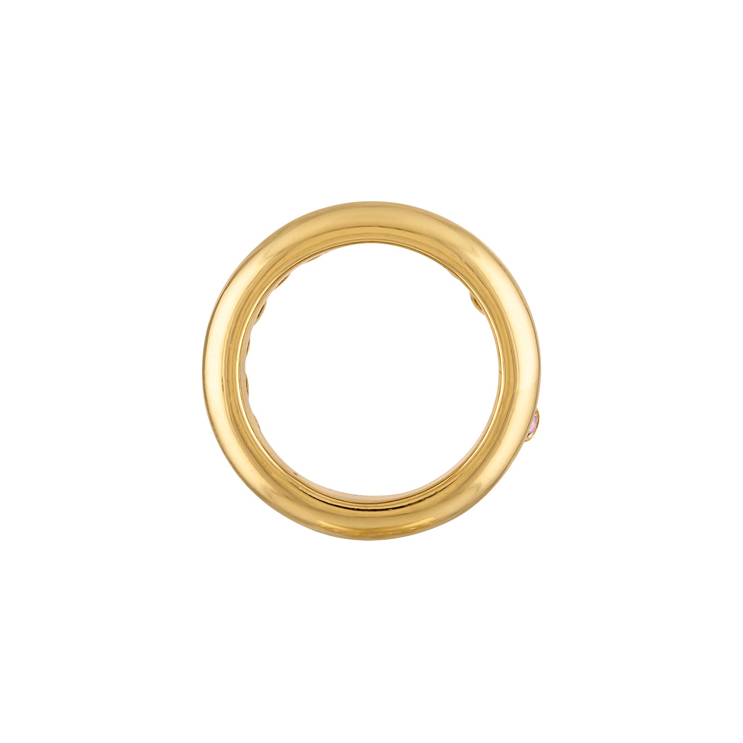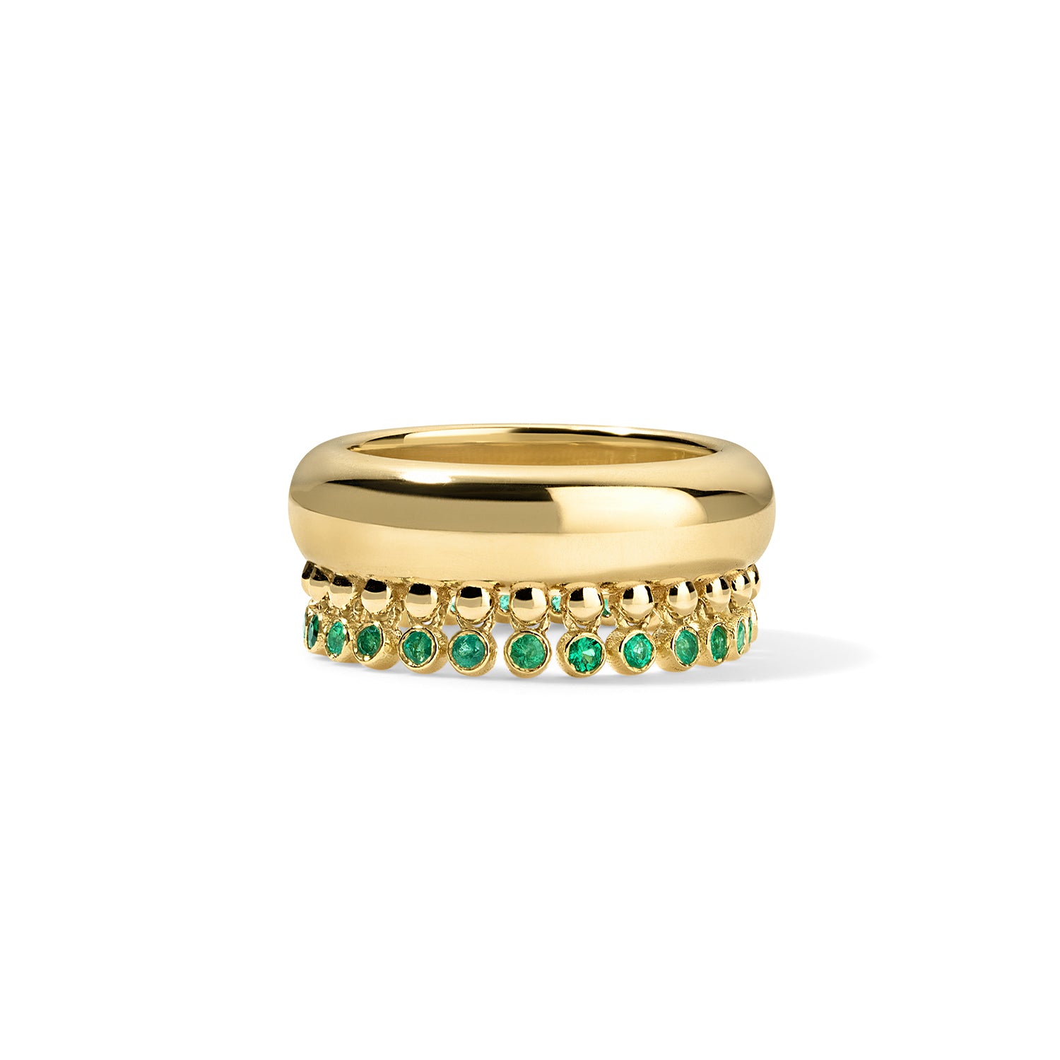A refined take on a signature Jade Ruzzo silhouette. The Colored Stone Tennessee Ring features a 6mm band of solid 18-karat yellow gold, accented with a fringe of bezel-set stones in your choice of color. Each gem is set to move gently with the wearer—subtle shimmer that echoes the quiet rhythm of everyday life.