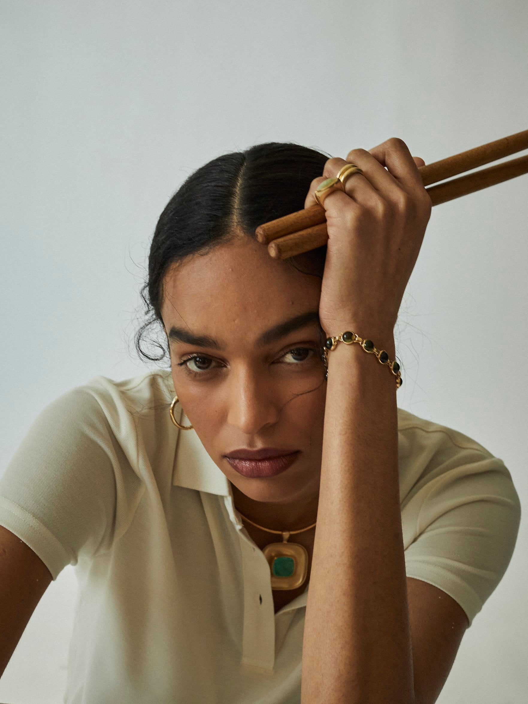 Handmade in New York City, each piece is cast in 18-karat gold and set with hand-selected gemstones (unless otherwise specified). Designed by Jade Ruzzo with an emphasis on sculptural lines, quiet strength, and heirloom quality.