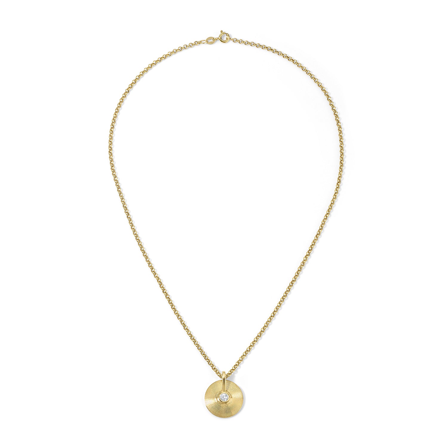 Part of the Percussion Collection, the XS Cymbal Pendant honors Jade's late father, Vic—a professional drummer. The most delicate in the series, this pendant whispers rather than speaks, its clean surface engraved simply with "keeping the beat" on the reverse. Designed to layer or wear alone, it rests close to the heart as an everyday heirloom.