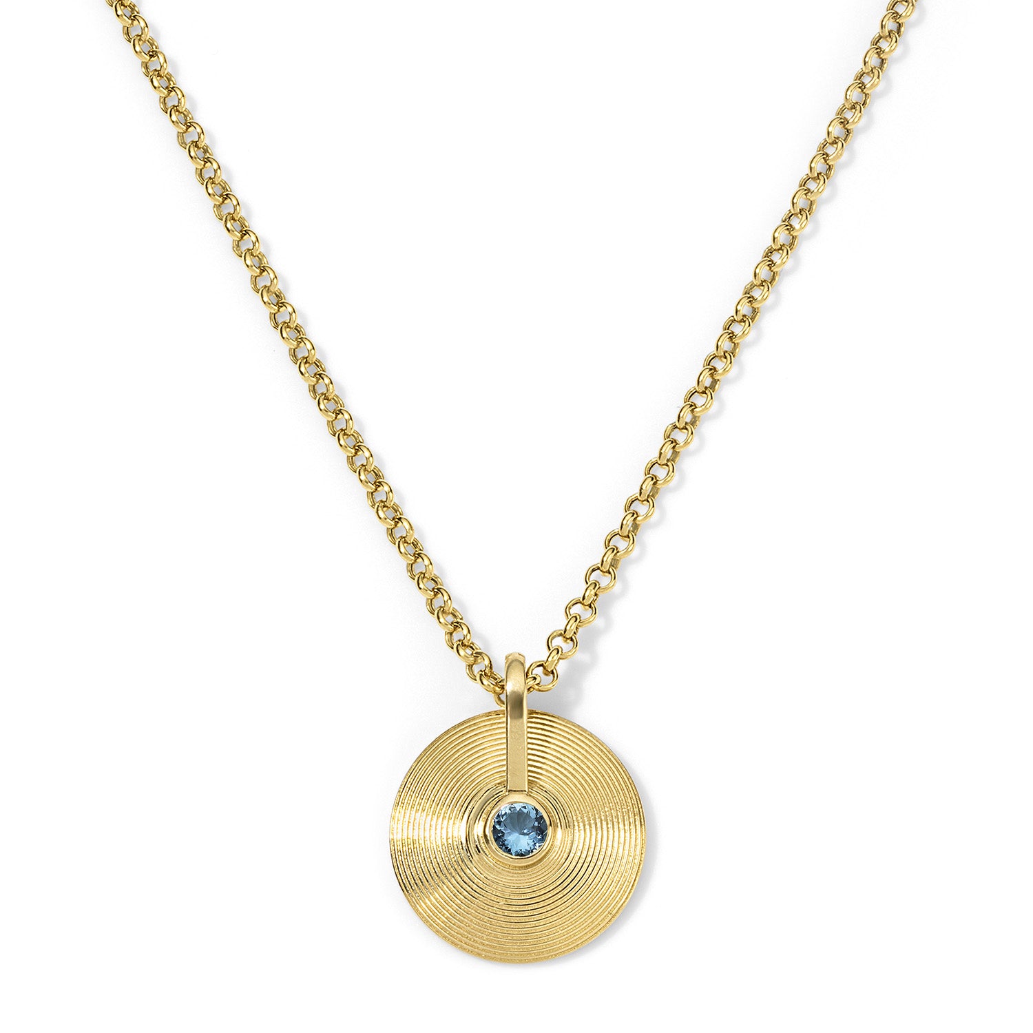 Part of the Percussion Collection, the XS Cymbal Pendant honors Jade's late father, Vic—a professional drummer. The most delicate in the series, this pendant whispers rather than speaks, its clean surface engraved simply with "keeping the beat" on the reverse. Designed to layer or wear alone, it rests close to the heart as an everyday heirloom.
