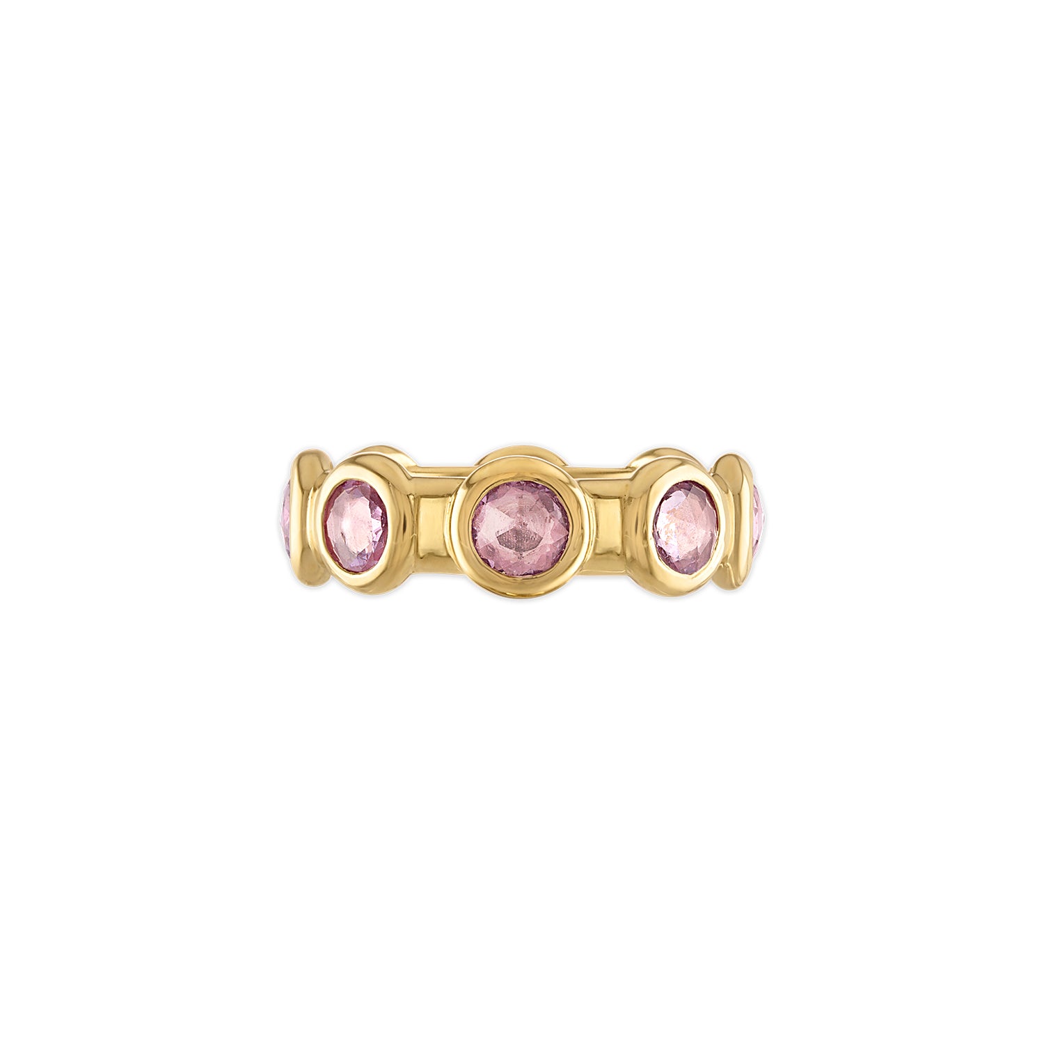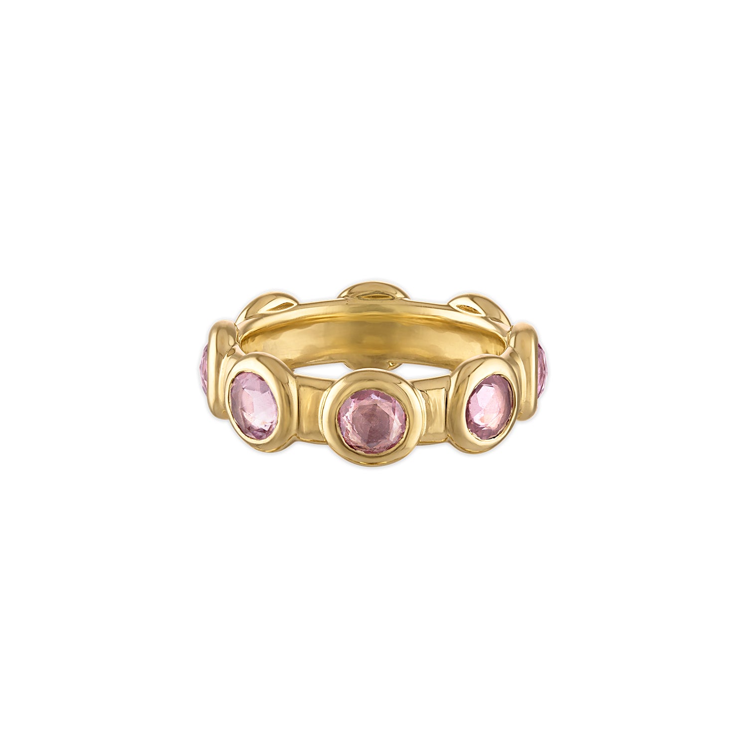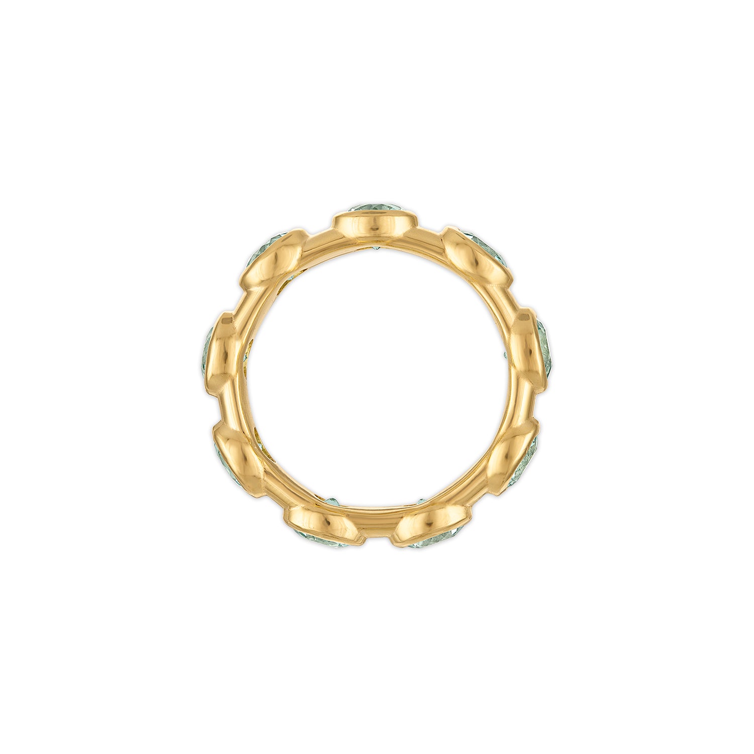 Named for Jade’s father, the Vic Ring balances strength and softness in equal measure. The XS Vic features nine 4.5mm faceted stones set into a smooth, pillowy band of solid 18-karat yellow gold. Lower in profile but rich in presence, it brings rhythmic repetition and bold geometry to a more compact silhouette—graphic, grounded, and quietly powerful.